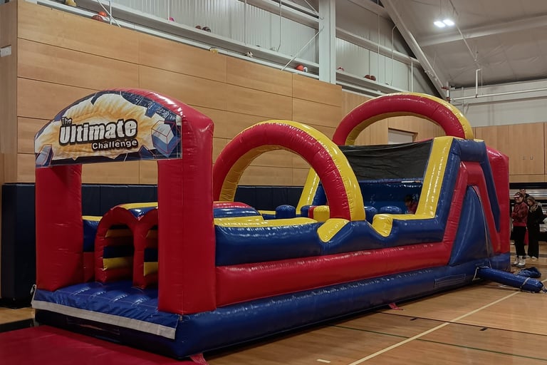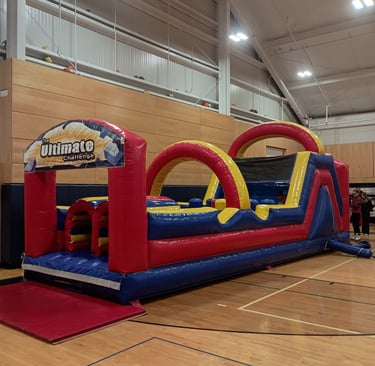 Double the size of a standard moonwalk, this 30-foot dual-lane course is built for high-energy competition. Featuring seven interactive elements—including tunnels, pop-up obstacles, and a climbing wall—it’s designed to keep lines moving fast at large-scale events. Whether it's a school field day or a corporate team-building challenge, this course provides a safe, high-capacity experience for both kids and adults.